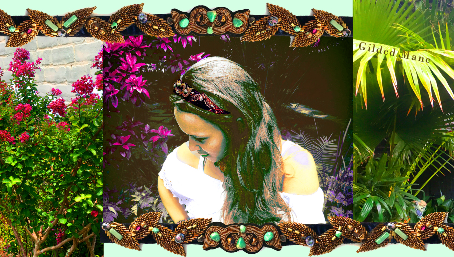 And recently, I’ve expanded my sartorial experimentation to include accessories. I call the result Gilded Mane, and my embellished headpieces can be purchased via my online shop.